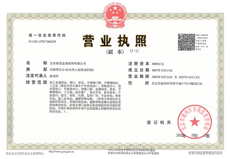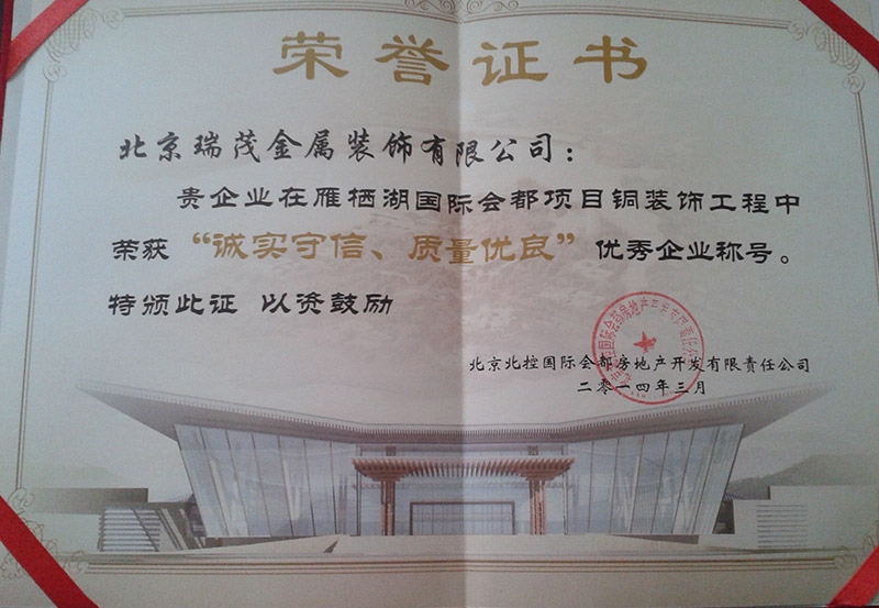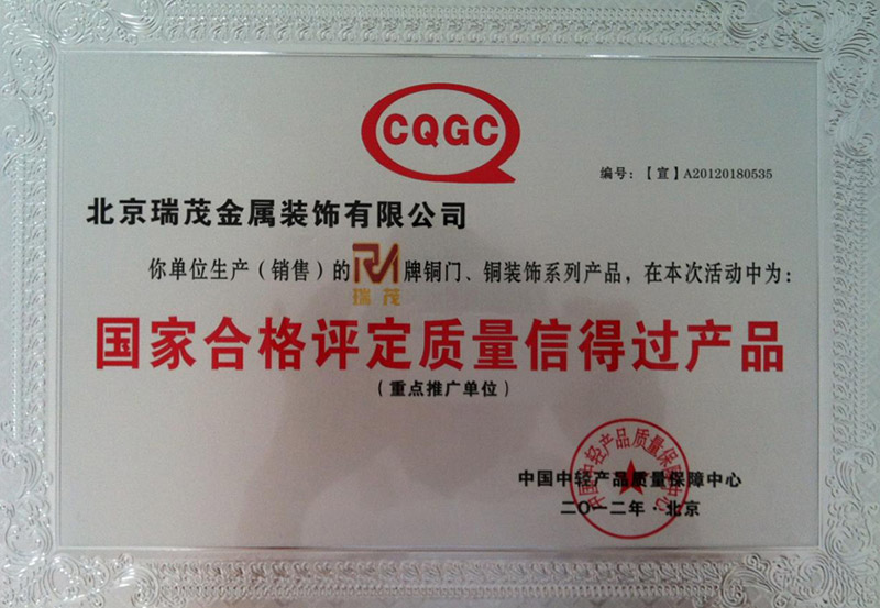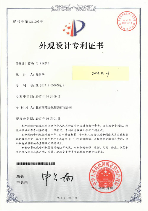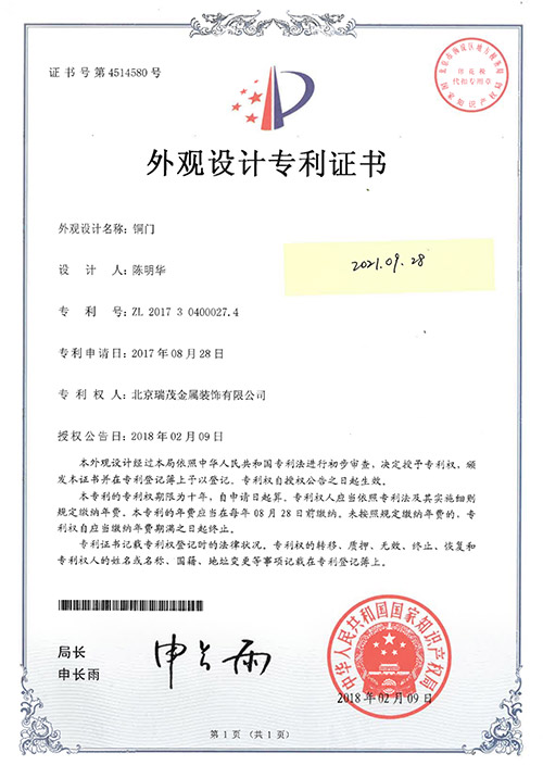 Since the development of Ruimao Copper Art, it has attracted the excellent design team and experienced metal processing team, Copper door and Copper Art Museum in Tongzhou District, Beijing,and set up headquarters office building in Beijing Hi-tech Industrial Park for creative design and research, while there are three factories in Tianjin, a total area of more than 30,000 square meters. Ruimao copper supporting facilities are perfect, integrating product research and development, production and processing, sales and installation , the implementation of the strictest environmental safety standards. The company emphasize on the introduction and training of professional talents, at the same time attach importance to the use of high-tech products and traditional handicrafts in production, the production of copper doors to environmental art, and modern aesthetic fashion as the orientation, set practical, appreciation, collection .