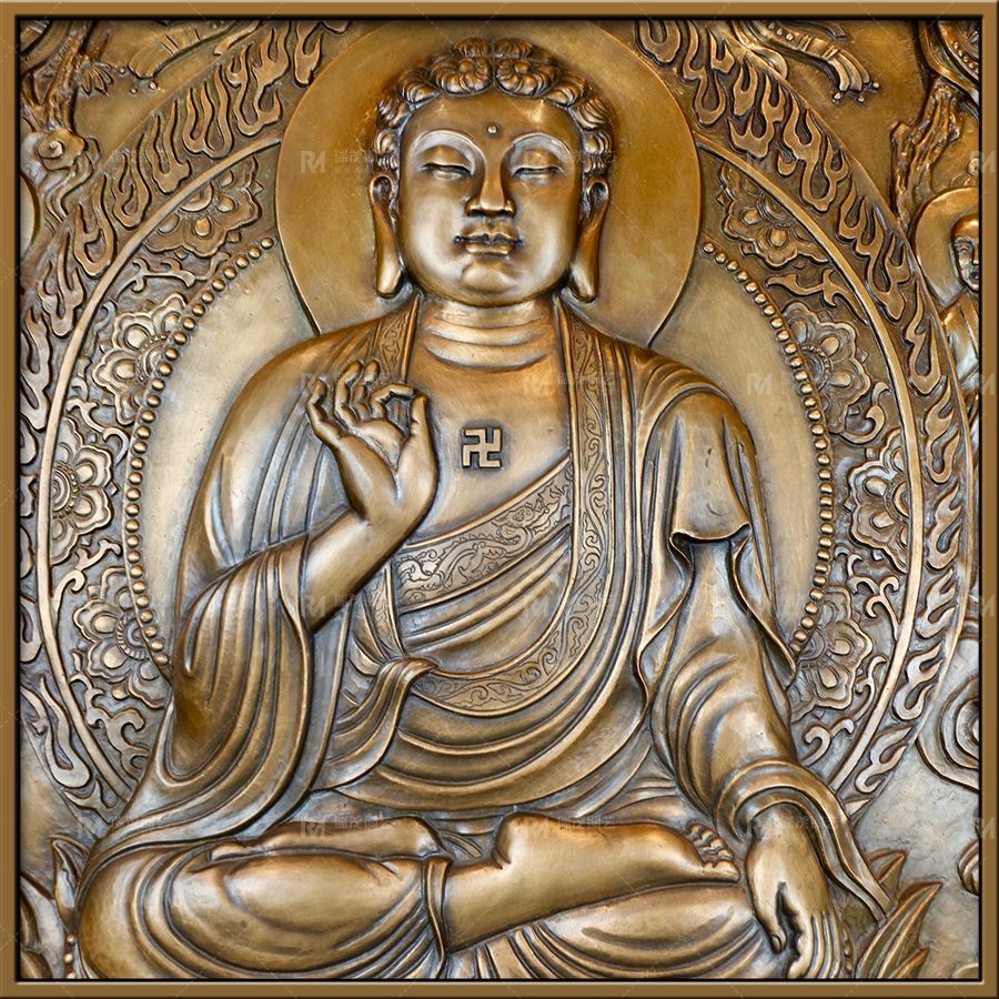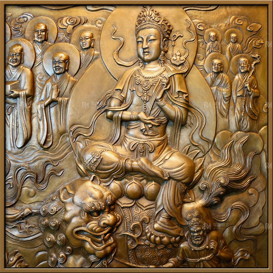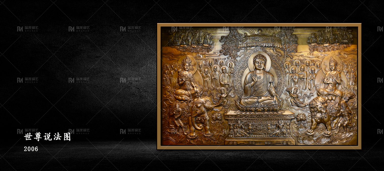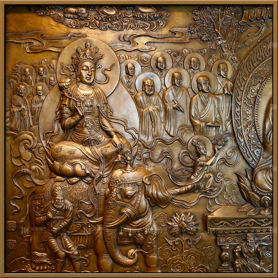 佛祖释迦摩尼在灵山法会说法,左边骑六牙白象的是普贤菩萨,右边骑狮子的是文殊师利菩萨,还有众多罗汉神仙前来听讲。此图是八大处灵光寺大殿佛教主题壁画的核心部分,全图为二十诸天礼佛图,借鉴北京法海寺和山西永乐宫壁画,是经典传统题材,人物众多,形象生动,是不可多得的艺术珍品。