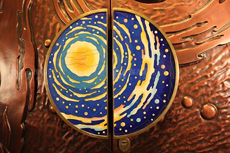 从美学角度审视这一铜门,可谓雄浑厚重,气势磅礴。