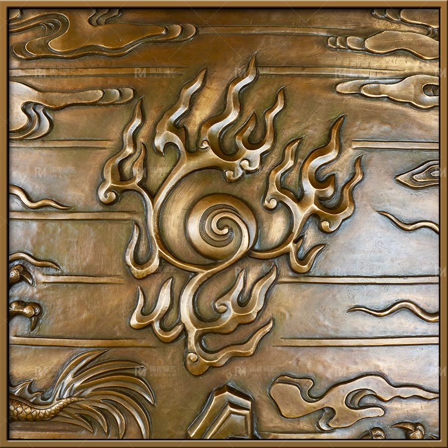 用电能和燃气将铜板加热,增加铜板的延展性,通过手工錾刻锻錾出各种浮雕花型。