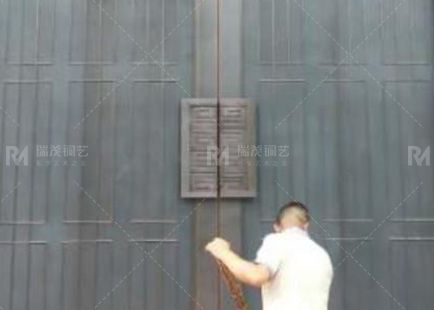 经过拉丝、打磨处理好纹理的工件放在抗氧化的专用药水里浸泡后,用专用的金属氟碳油漆对工件进行喷涂、高温烤箱烘烤使之硬化,防止铜表面氧化。