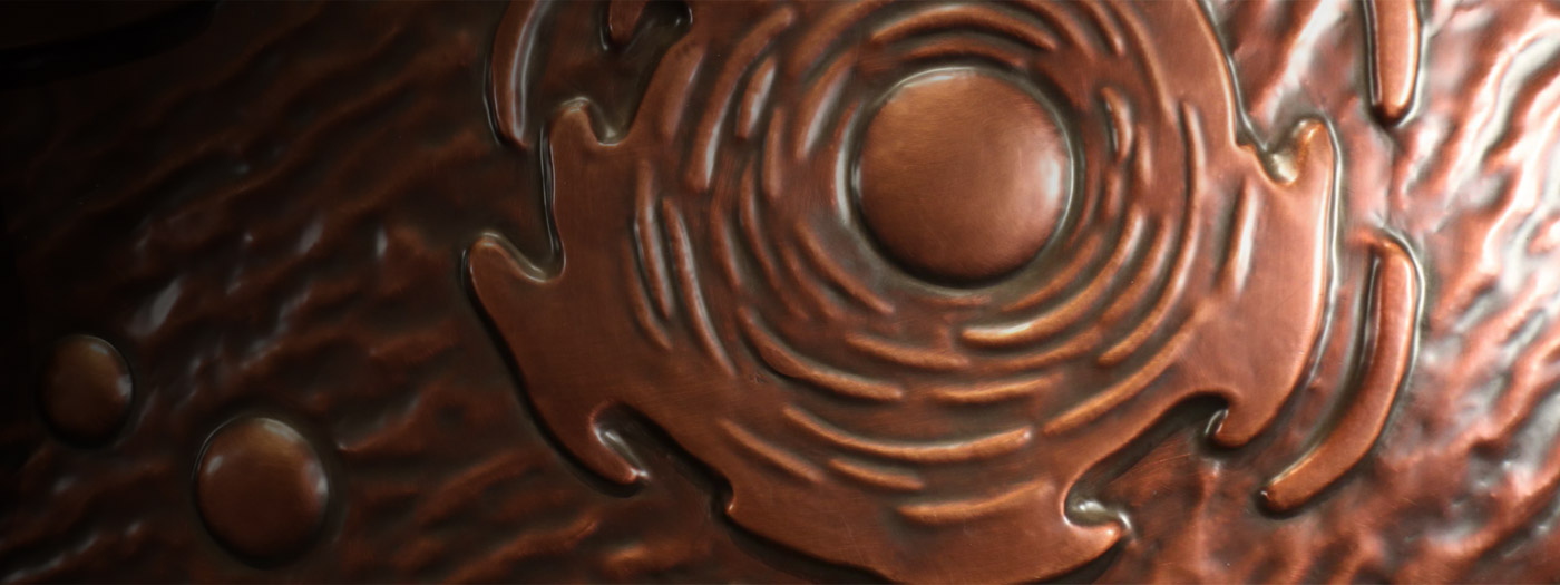 铜具有很好的防腐蚀性,坚硬而柔韧, 延展性好, 且颜色高贵温润,加工后具有独特的质感和视觉效果。
