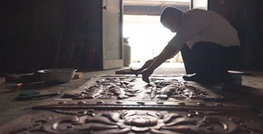 用电能和燃气将铜板加热,增加铜板的延展性,通过手工錾刻锻錾出各种浮雕花型。