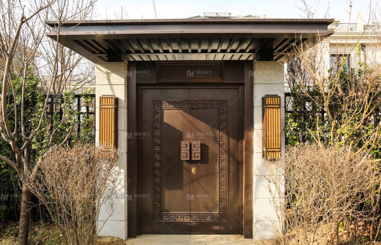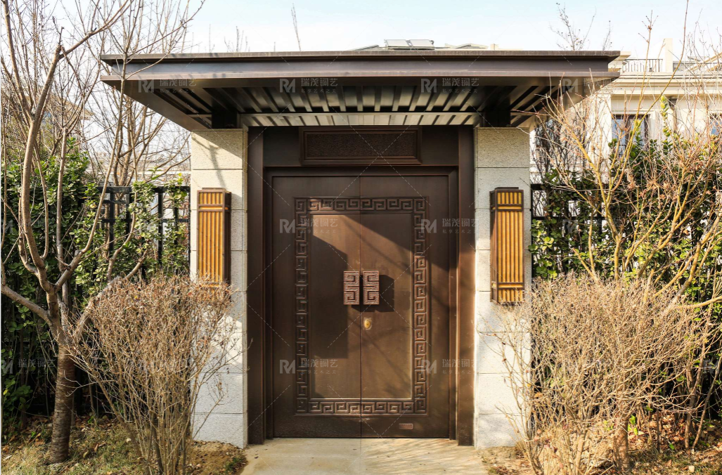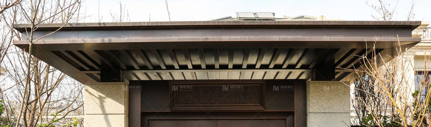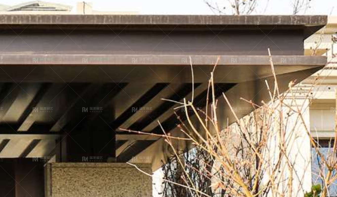 • 雨蓬檩子为加厚铜板精工 焊接,表面仿古处理,高级环保氟碳防护漆喷涂;