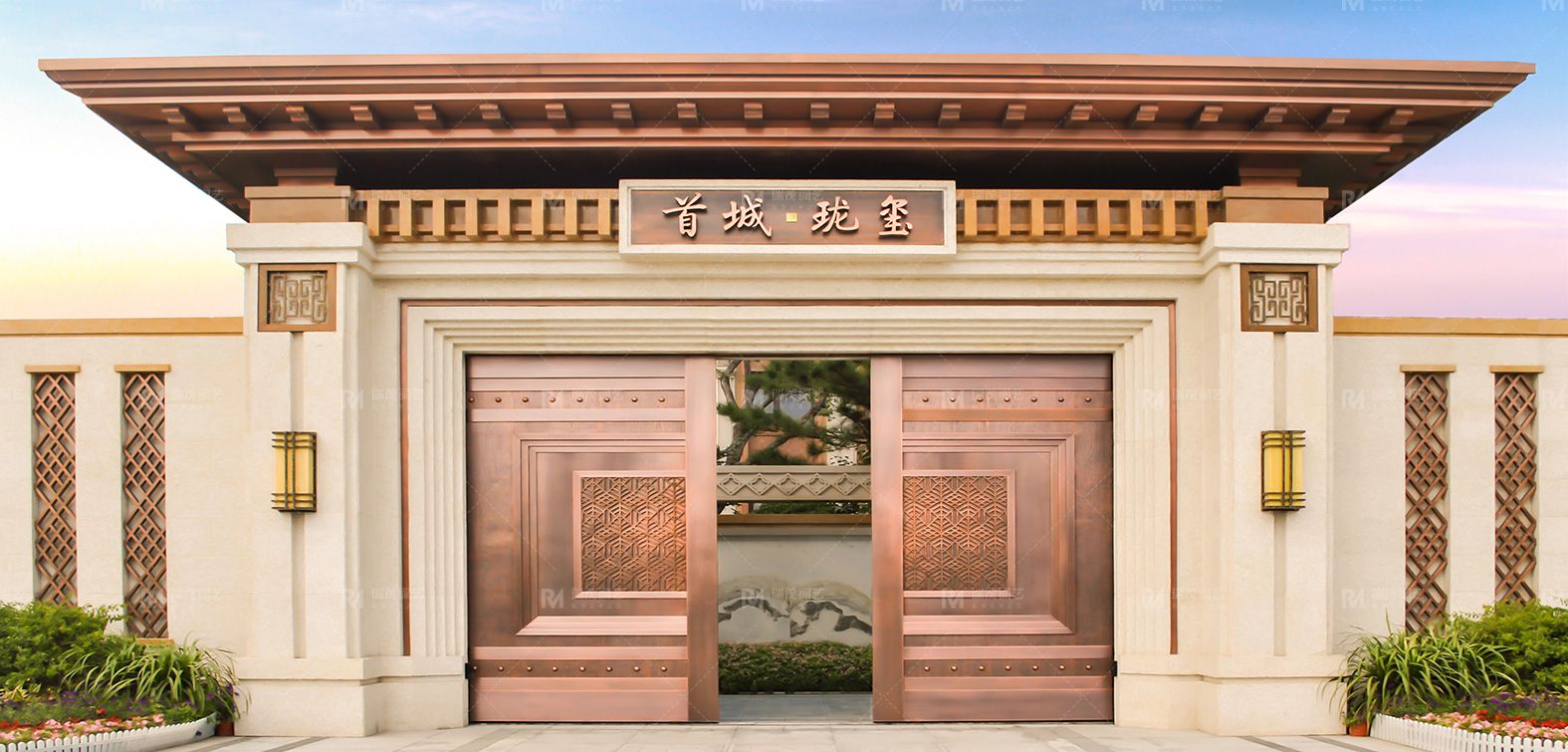 Concealed translational electric copper door; national standard hot-dip galvanized steel pipe skeleton, T2 material copper plate finish, 5mm thick laser cutting pure copper flower shape, decorated with 28 copper