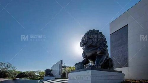 the bronze lion qi yu xuan Yang, foot on mountains and rivers, symbolizing the gas swallow mountain river, town house. The base of the bronze lion is carved in pure white marble. They will be old and new with the passage of time, showing a sense of dignity.