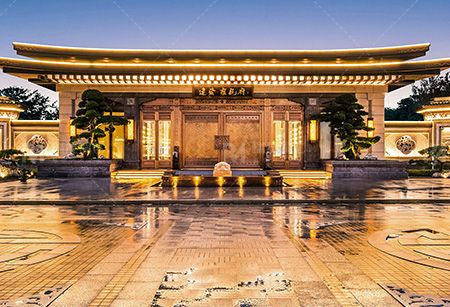 Copper Courtyard Door: National standard 5mm hot-dip galvanized steel pipe skeleton, T2 material copper plate finish, fixed fan on both sides is 6mm+12mm+6mm hollowed-out glass; open fan is thickened copper plate laser hollowed-out flower, precision welding forming, column flower decoration is by pure hand-forge processing, the special door head combines metal forging and round carving process; surface antique treatment, high-grade environmental protection fluorocarbon protective paint spraying; Italian imported fully automatic intelligent swing door system.
