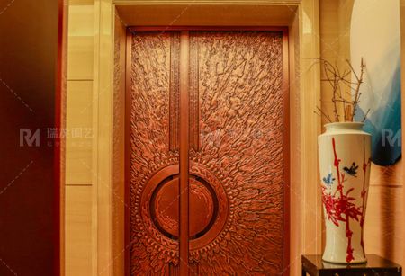 Patented product, high-end door special-type material, with fireproof material sandwich, purely handmade forged embossed texture,advanced environmental protection fluorocarbon protective paint spraying; forged artistic sliding cover handle, Germany originally imported Heinrichs door opening system (including fingerprint, password, swiping card three-in-one smart cipher, high-end PX exit button, 18 lock points long electronic lock, three-dimensional adjustable concealed page, automatic dust strip).