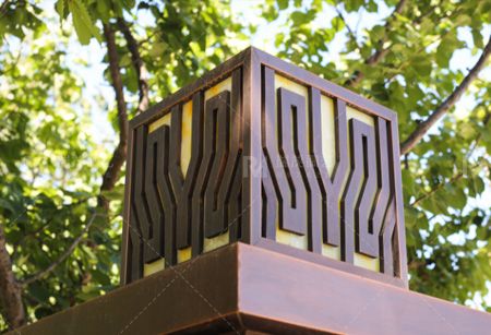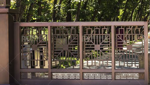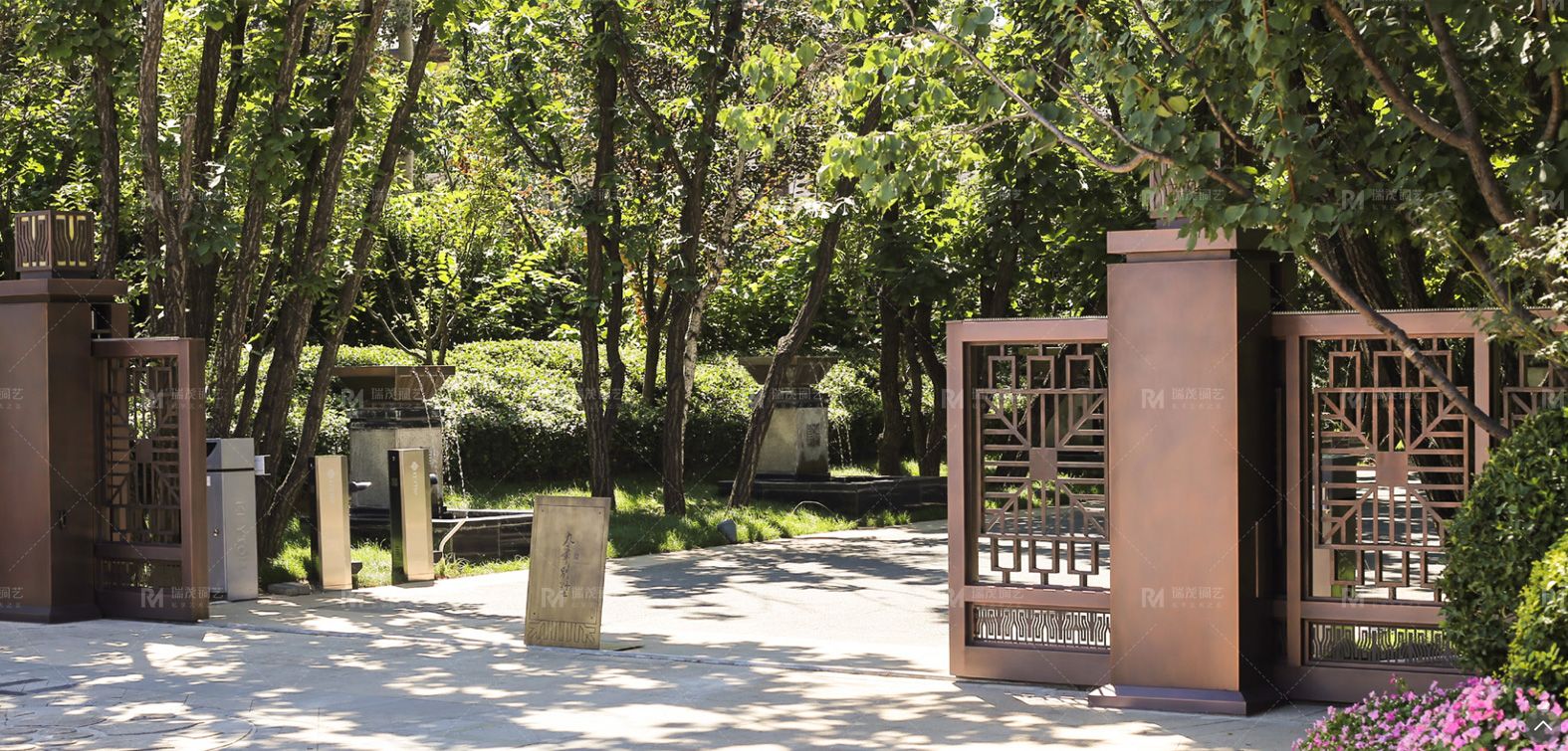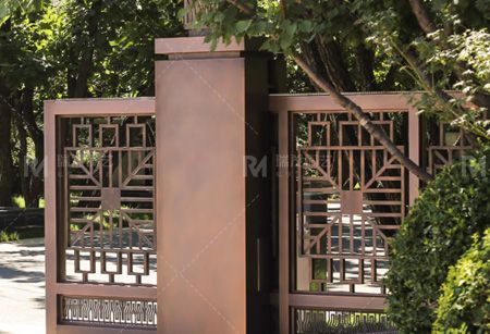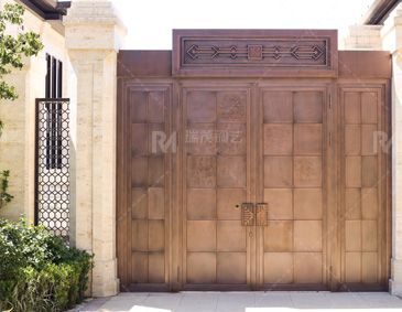 The translational hollow process copper door is integrated with the copper column and th column lamp. National standard hot-dip galvanized steel pipe skeleton, T2 material copper plate composite, 10mm thick copper plate laser hollow flower, precision welding forming,surface antique treatment, advanced environmental protection fluorocarbon protective paint spraying. Italy originally imported fully automatic intelligent sliding door system.