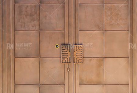 Fixed fan on both sides, and the door open in the middle. National standard hot-dip galvanized steel pipe skeleton, T2 material copper plate composite. The door head and the handle are pure hand-forging+ precision welding process. The surface of the door panel is made up of 20mm gaps by the welded joint bubbleing nails, which are arranged neatly. Surface antique treatment, advanced environmental protection